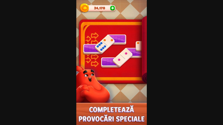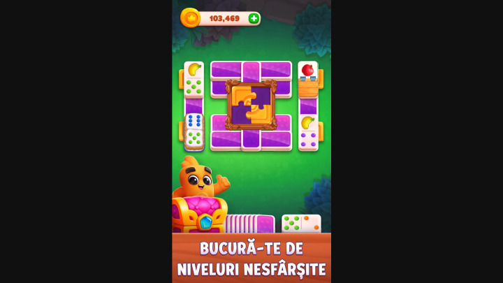 Explică continutul jocului: Construiește-ți regatul completând niveluri de domino și câștigă premii!